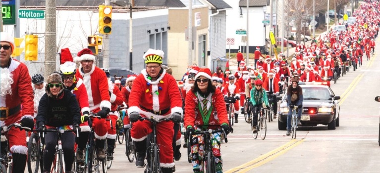 Join us for this fun community event where we will ride from Sun Country down through downtown (about a 40 minute ride) ending at Ratio Coffee downtown for a warm beverage and snack. Dressing up as Santa or Mrs Claus, Elves, Reindeer or any other festive character will enter you into our draw for some great prizes. Family friendly. Tell everyone you know!!